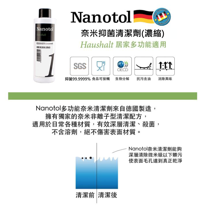 使用Nanotol家用清潔劑可以簡單的獲取清潔、衛生的保證